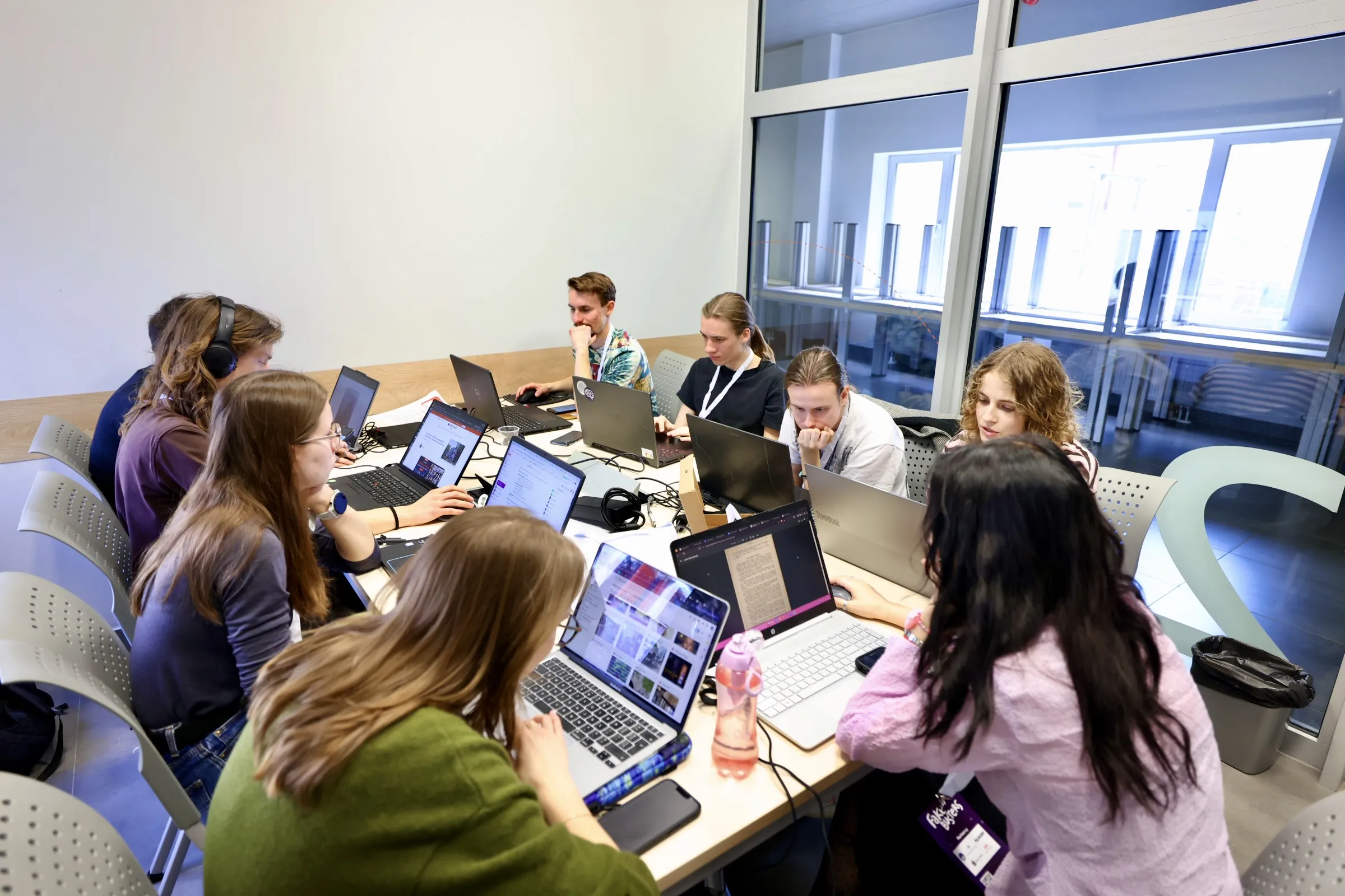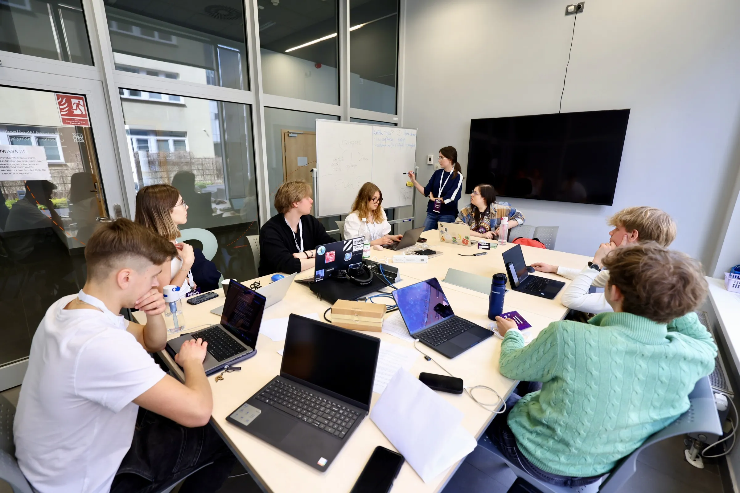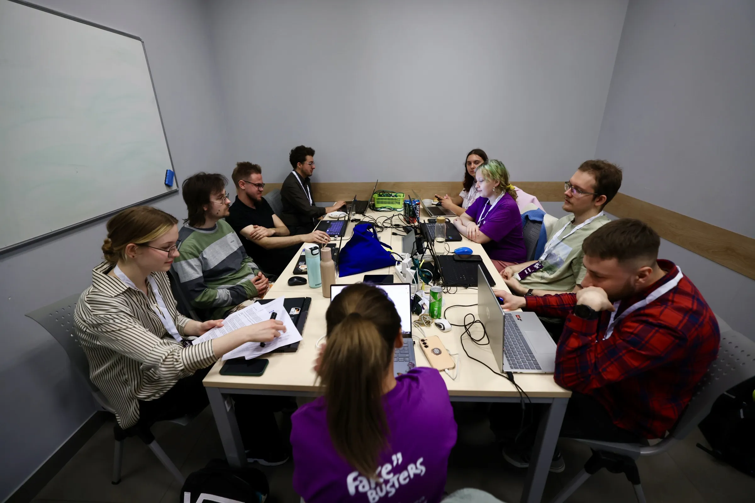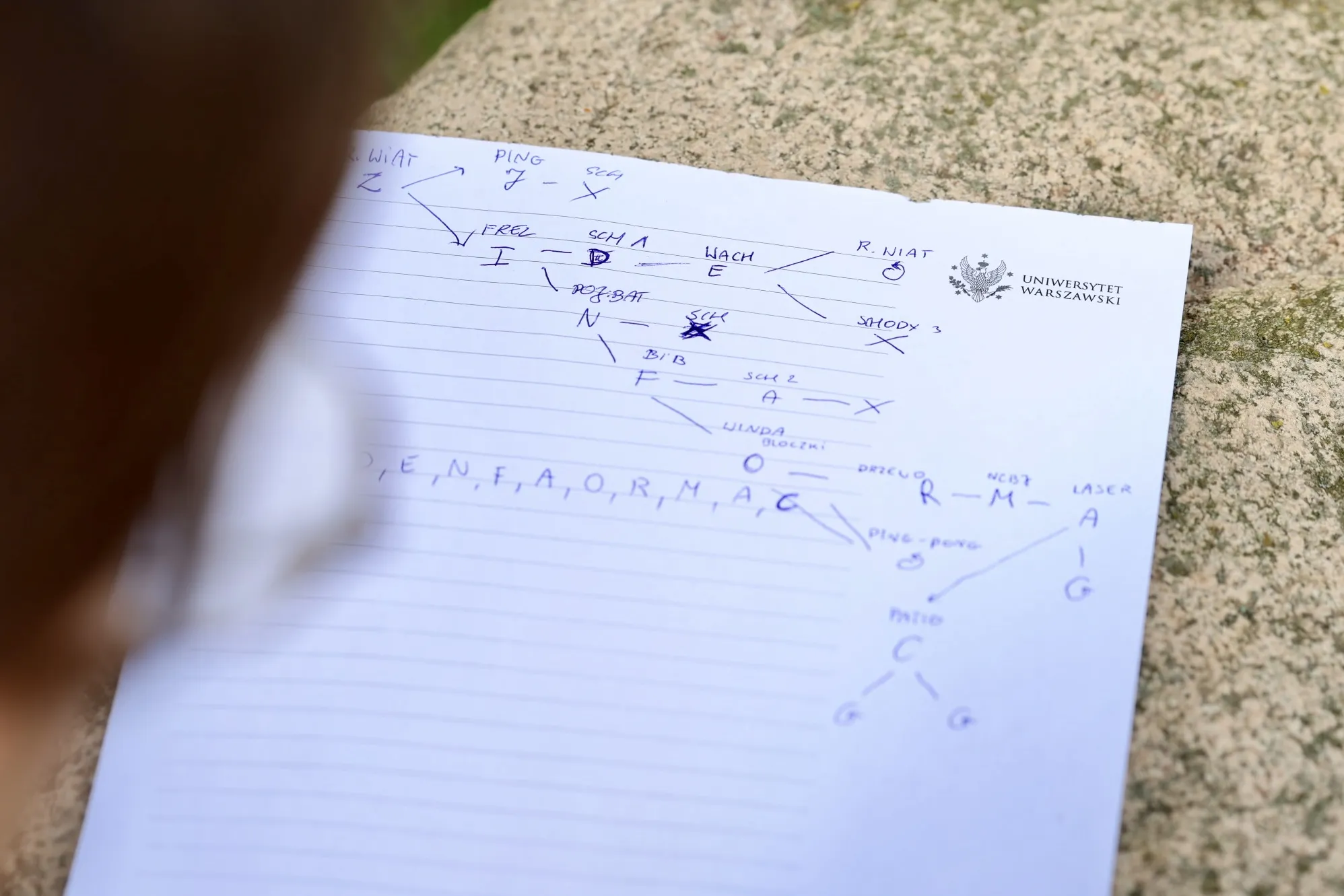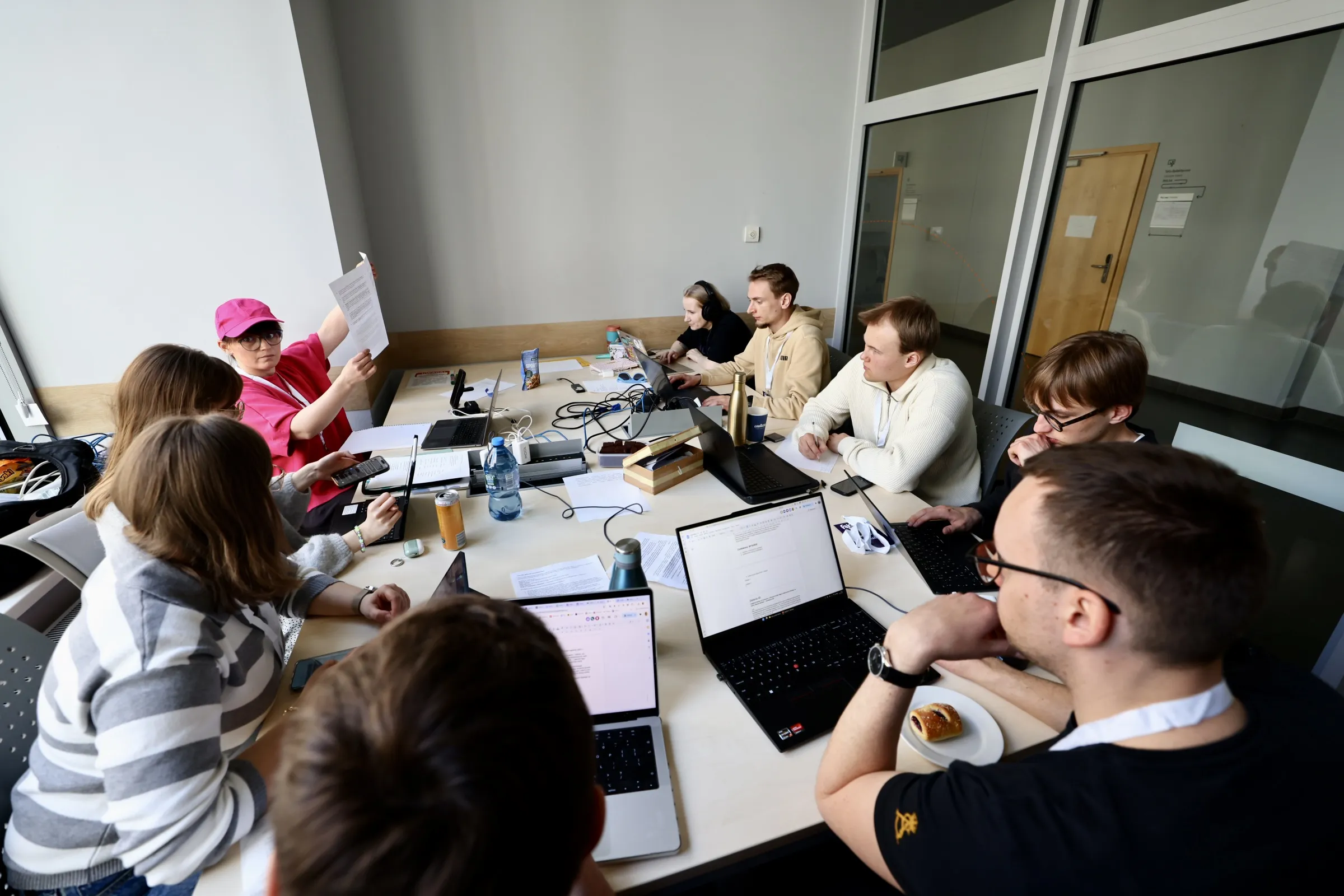 Punktualnie o 12 uczestniczki i uczestnicy zostali przywitani przez przedstawicieli organizatora i członków Zespołu merytorycznego. Powiadomiono ich o zasadach bezpieczeństwa i o wyzwaniach, które dla nich przygotowano. Następnie rozpoczęła się rywalizacja. Jej początek stanowiło zadanie, polegające na odnalezieniu swojej grupy jedynie za pomocą zdjęcia a następnie, przemieszczając się po przygotowanych wskazówkach, trzeba było odnaleźć hasło, które dawało dostęp do pokoju, w którym grupa otrzymywała kolejne zadania. Gra terenowa, której rozwiązaniem było słowo DEZINFORMACJA, wskazała przestrzenie do pracy wszystkim 10 grupom. W tych salach, przez kolejne kilkanaście godzin finalistki i finaliści odpowiadali na kilkadziesiąt pytań oraz przygotowywali prezentację, która pokazać miała, jak członkinie i członkowie grupy proponują rozwiązać problem dezinformacji. Byli z nami studentki i studenci, reprezentujący takie miasta jak Białystok, Dęblin, Elbląg, Gdańsk, Gliwice, Katowice, Kraków, Lublin, Łódź, Olsztyn, Płock, Poznań, Szczecin, Tarnów, Toruń, Warszawa, Wrocław czy Zielona Góra. Największym sukcesem było dla nas zgromadzenie reprezentantów z wielu różnych uczelni. Do finału, pokonując kilkuset rywali, dostali się studenci, na co dzień kształcący się w takich ośrodkach jak Politechnika Białostocka, Uniwersytet w Białymstoku, Lotnicza Akademia Wojskowa w Dęblinie, Akademia Nauk Stosowanych w Elblągu, Politechnika Gdańska, Uniwersytet Gdański, Politechnika Śląska, Uniwersytet Ekonomiczny w Katowicach, Akademia Górniczo – Hutnicza im. Stanisława Staszica w Krakowie, Politechnika Krakowska im. Tadeusza Kościuszki, Uniwersytet Jagielloński w Krakowie, Uniwersytet Rolniczy im. Hugona Kołłątaja w Krakowie, Uniwersytet Marii Curie-Skłodowskiej w Lublinie, Akademia Humanistyczno – Ekonomiczna w Łodzi, Uniwersytet Łodzki, Uniwersytet Medyczny w Łodzi, Uniwersytet Warmińsko-Mazurski w Olsztynie, Akademia Mazowiecka w Płocku, Collegium Da Vinci w Poznaniu, Uniwersytet im. Adama Mickiewicza w Poznaniu, Uniwersytet WSB Merito w Poznaniu, Uniwersytet Szczecinski, Akademia Tarnowska, Uniwersytet WSB Merito w Toruniu, Akademia Sztuki Wojennej w Warszawie, Politechnika Warszawska, Polska Akademia Nauk (Graduate School for Social Research), Uczelnia Łazarskiego, Uczelnia Medyczna im. Marii Skłodowskiej- Curie w Warszawie, Politechnika Wrocławska, Uniwersytet Przyrodniczy we Wrocławiu, Uniwersytet Zielonogórski oraz oczywiście Uniwersytet Warszawski.